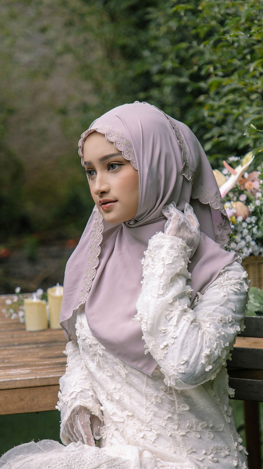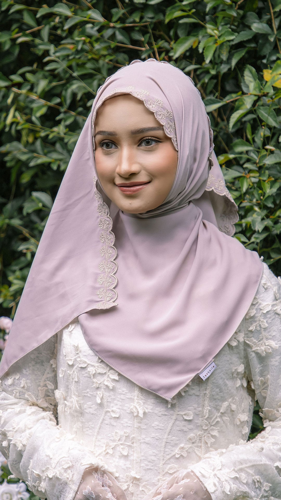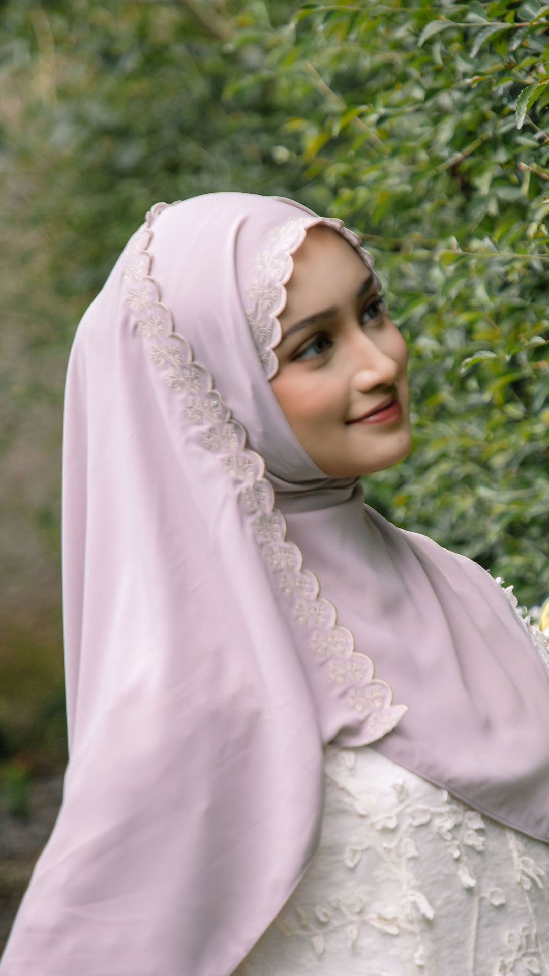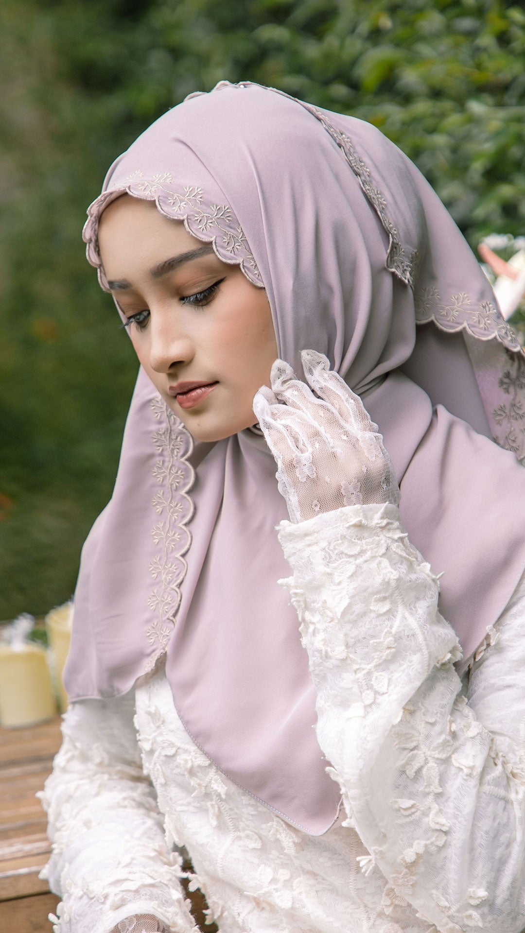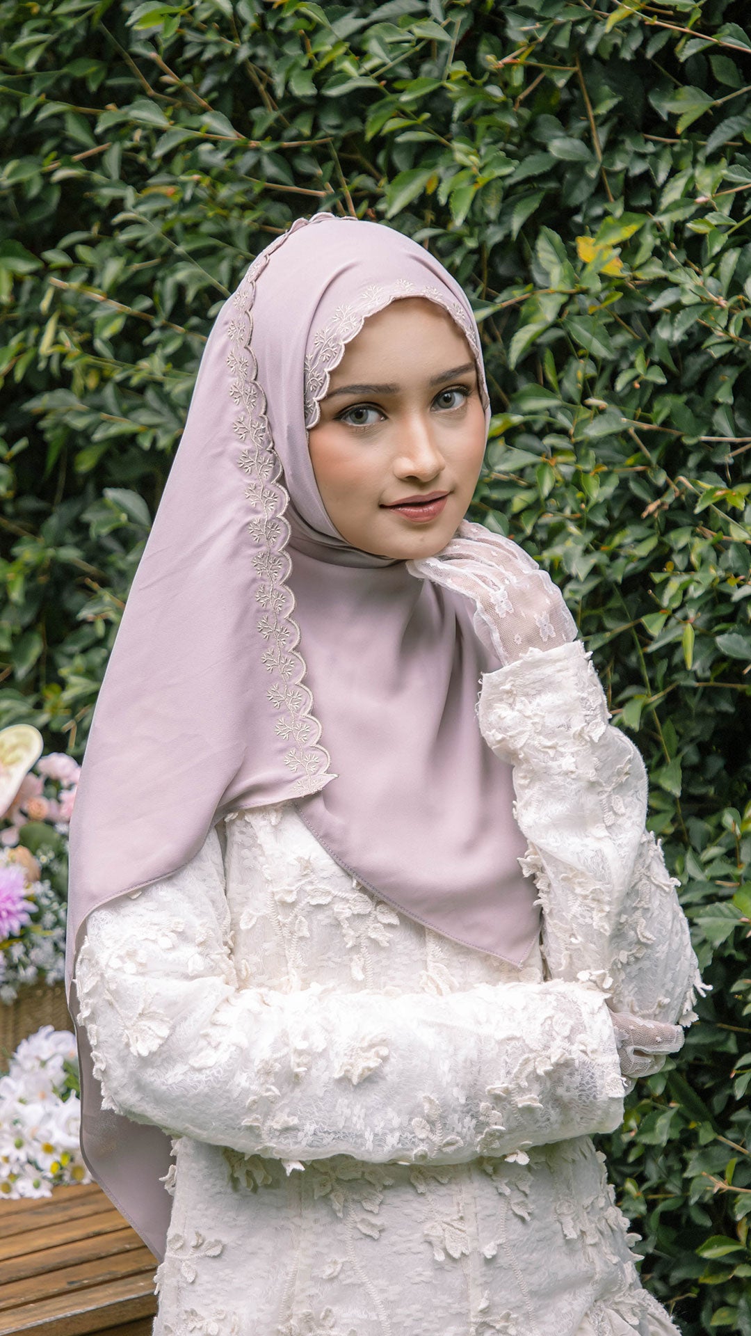 The shawl shapes effortlessly around the face, allowing for neat, structured styling or soft, flowy drapes depending on your preference. The elegant sulam (embroidery) detail inspired by the Teratai flower adds a subtle yet sophisticated charm a refined accent that elevates even the simplest outfit.