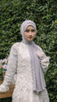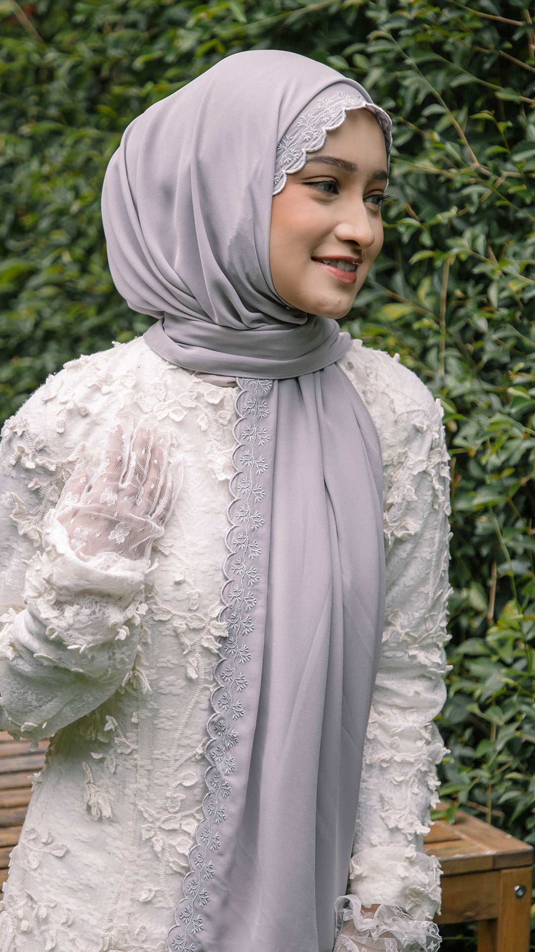 The shawl shapes effortlessly around the face, allowing for neat, structured styling or soft, flowy drapes depending on your preference. The elegant sulam (embroidery) detail inspired by the Teratai flower adds a subtle yet sophisticated charm a refined accent that elevates even the simplest outfit.