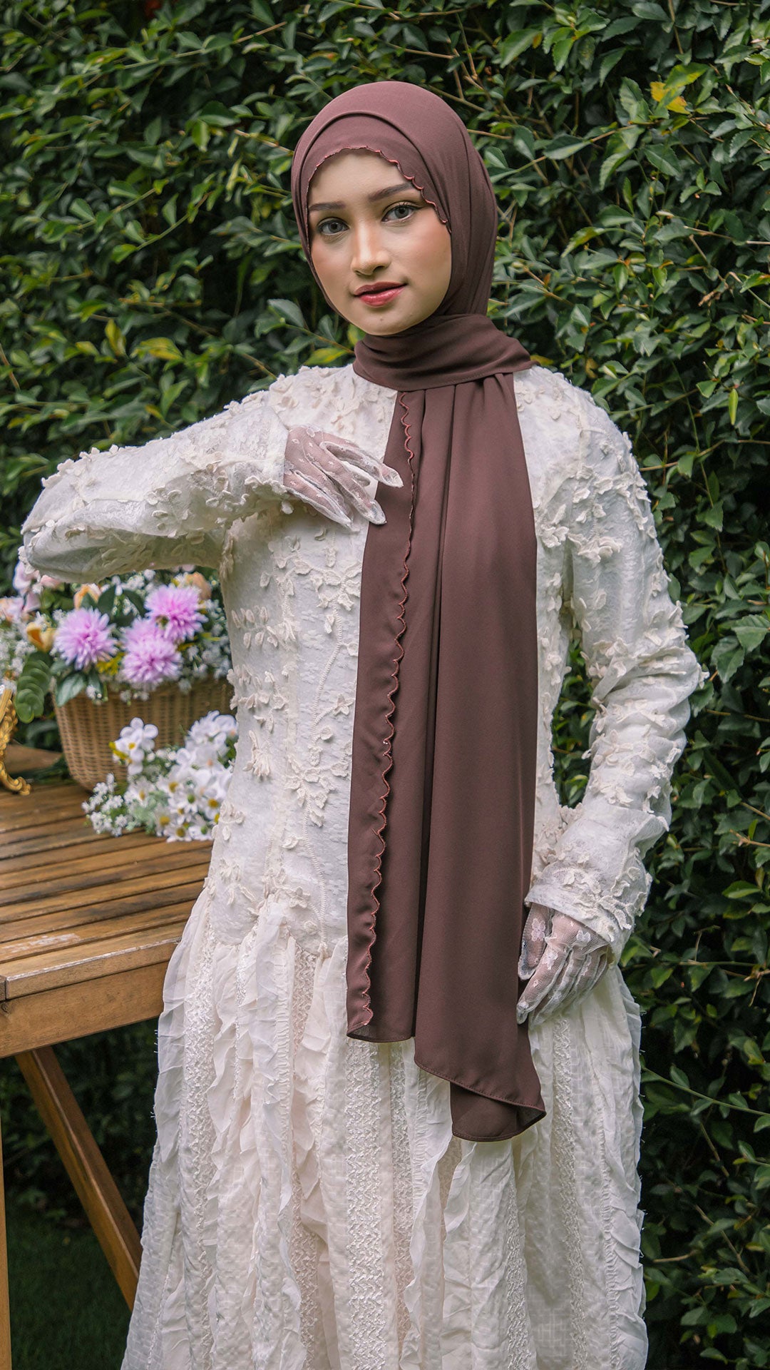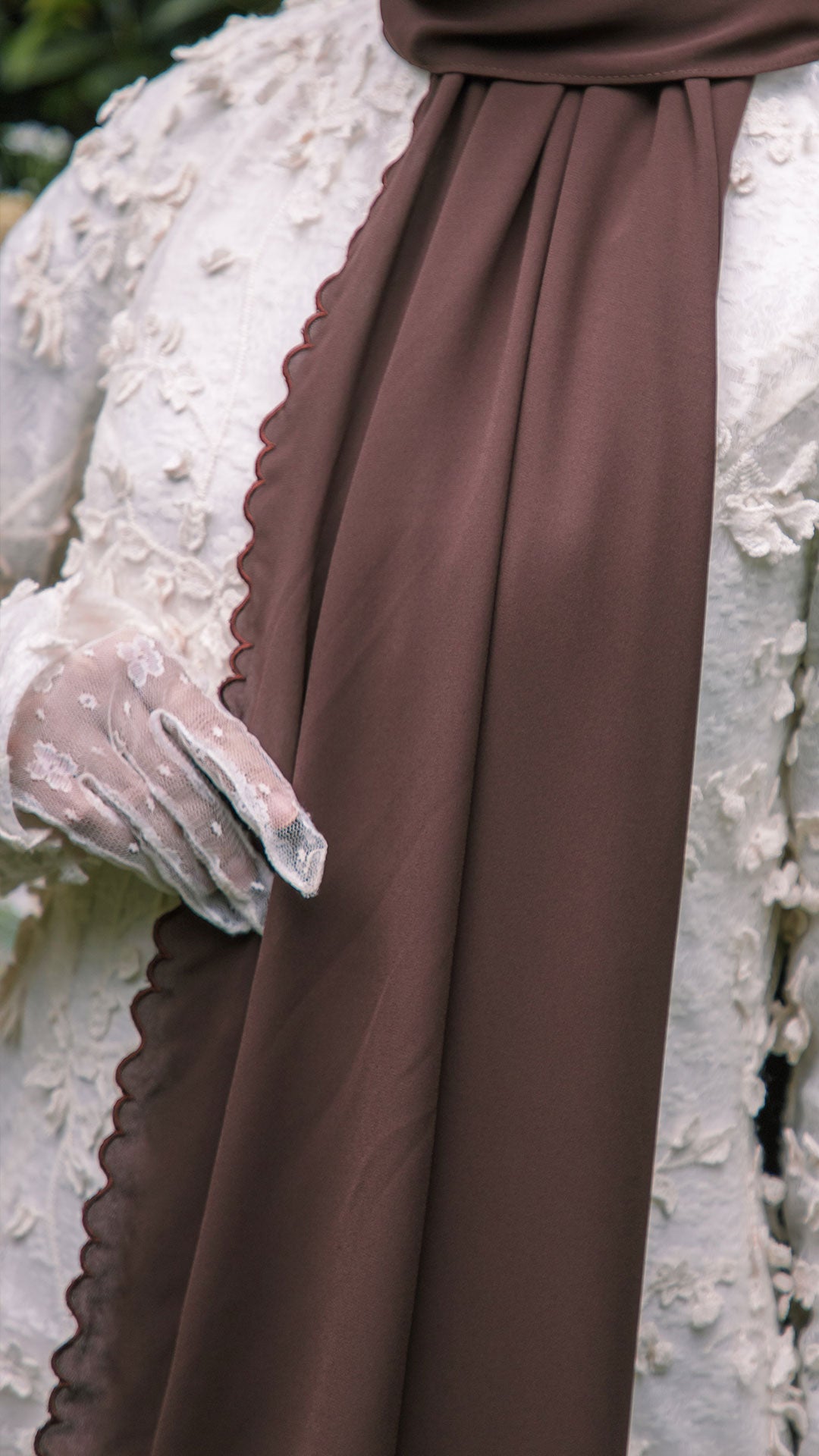 Baesic Sulam Teratai Shawl in Chocolate