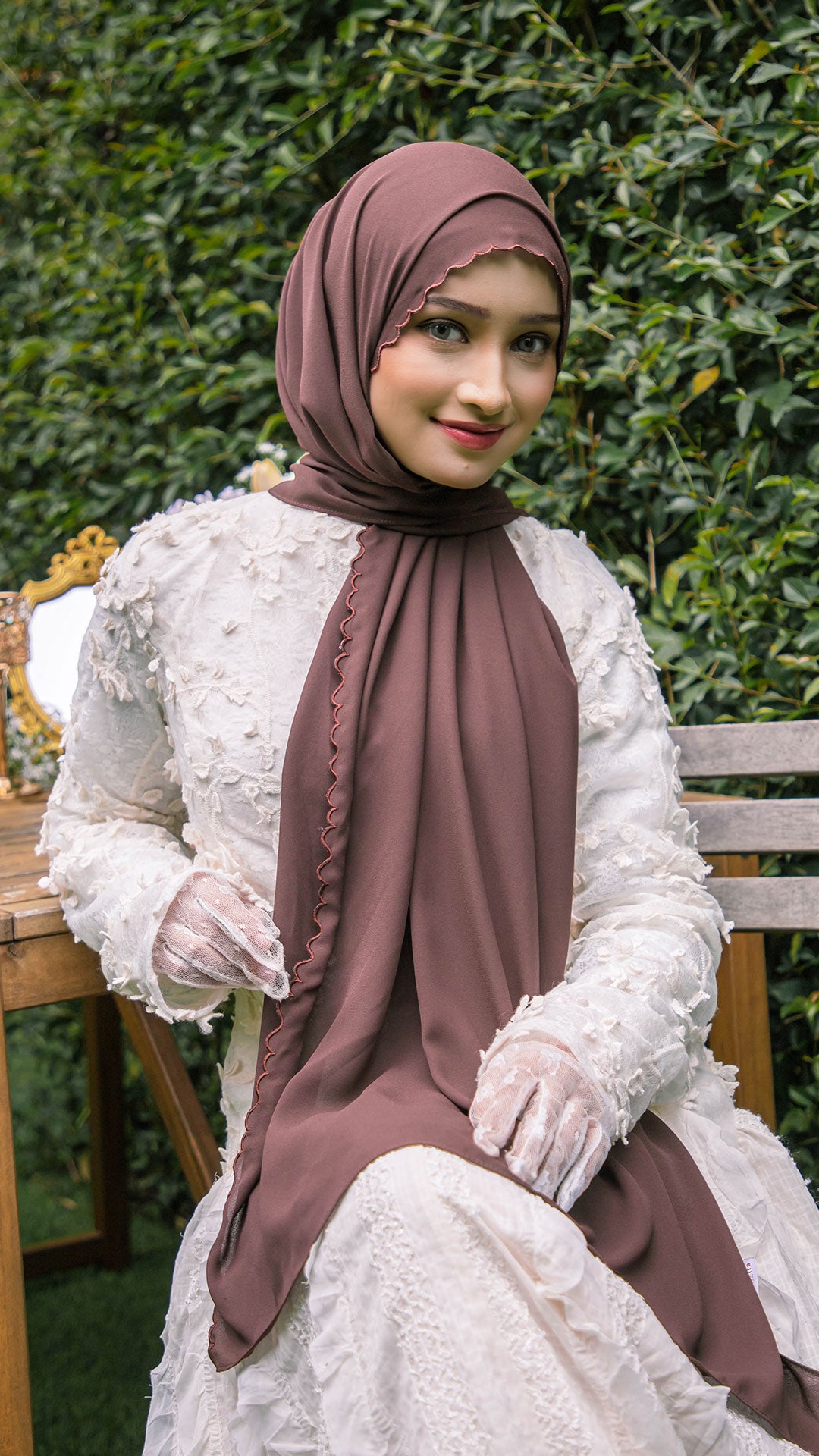 The shawl shapes effortlessly around the face, allowing for neat, structured styling or soft, flowy drapes depending on your preference. The elegant sulam (embroidery) detail inspired by the Teratai flower adds a subtle yet sophisticated charm a refined accent that elevates even the simplest outfit.
