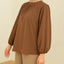 The design features a refined mandarin collar and dramatic balloon cuffs that add a subtle statement to your silhouette. A single back button closure completes the look with a clean, minimal touch.