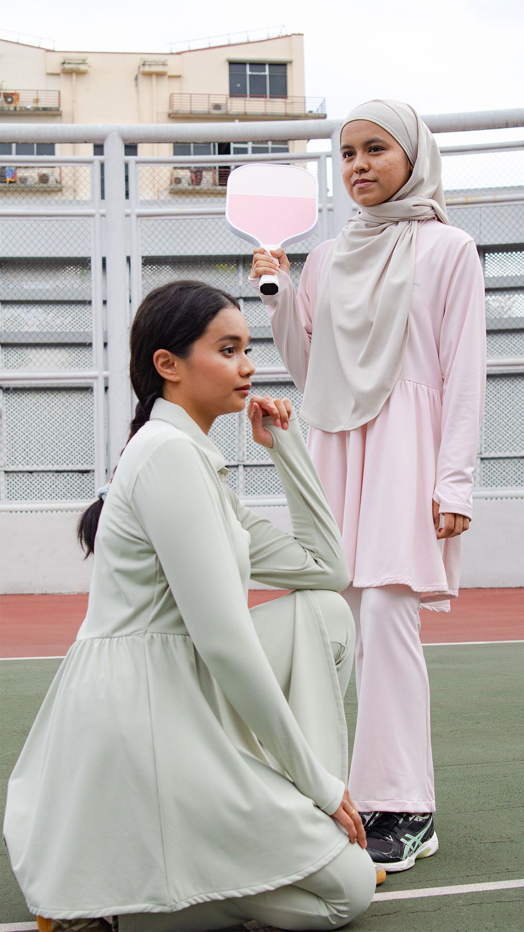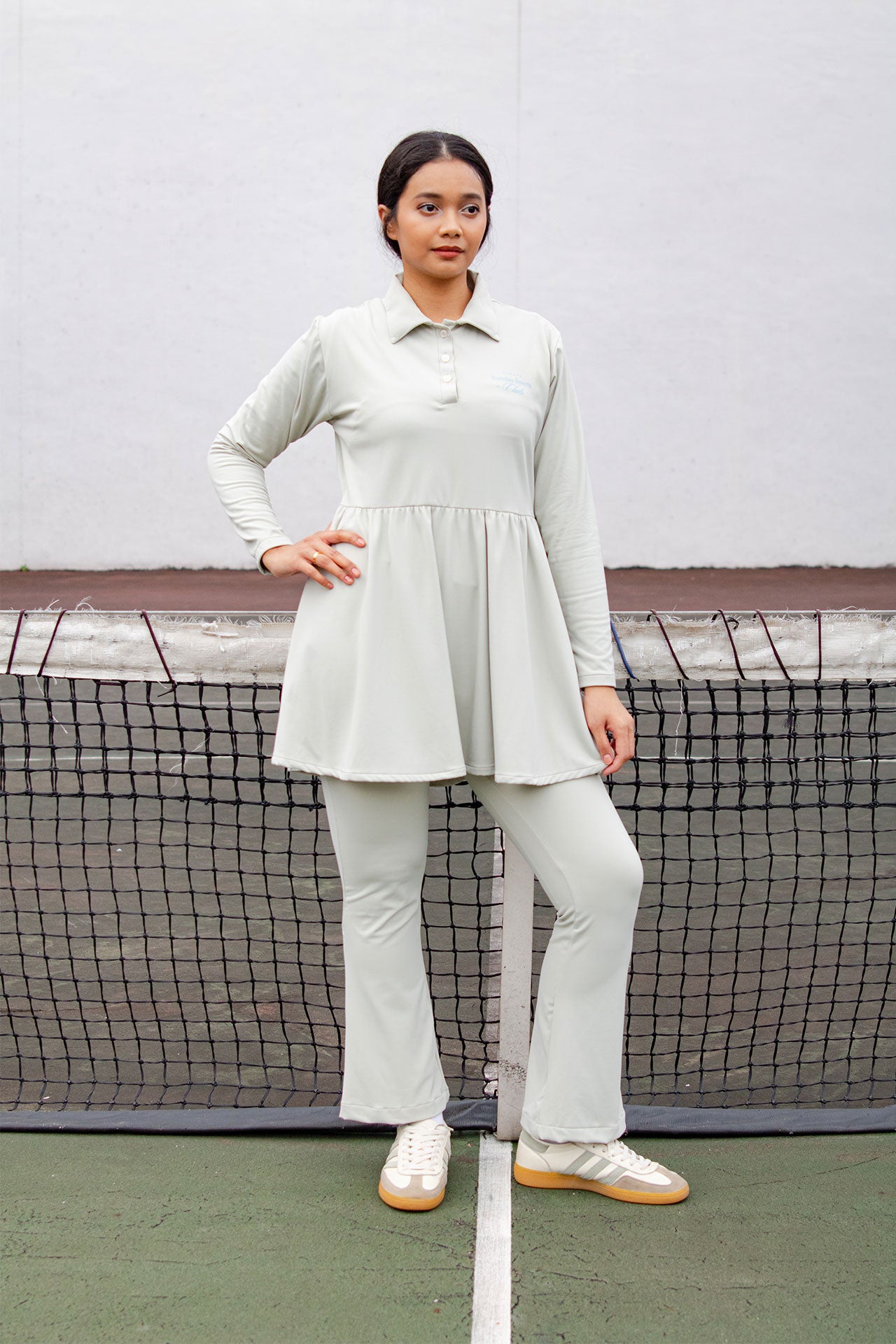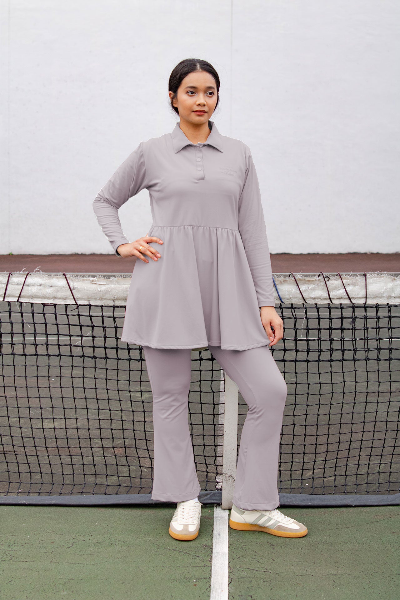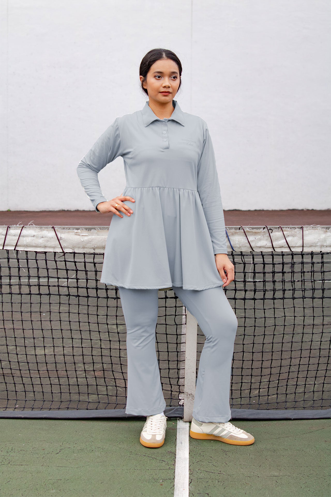 The collared button-front adds a polished touch, while the flared silhouette ensures modest coverage without compromising on movement.
